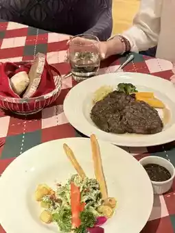 I can't eat at the buffet at night, but Jessica treats me to steak🥩. I'm so happy!