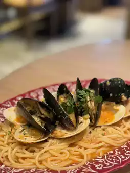👉🏻 Yatai style garlic mussel pasta very large mussels very fresh and satisfying 🥰 full of butter and garlic too delicious 👍🏻