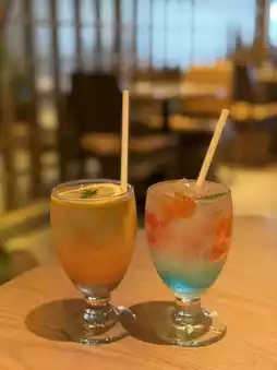 👉🏻 The drinks are very characteristic! The summer festival goldfish soda, persimmon syrup and purple sweet potato milk are all very igable, two cold drinks are sweet and sour, and goldfish candy is too cute😍 The milk is very thoughtful, Japanese feeling comes back!