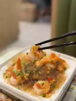 Steamed Phoenix Tail Shrimp with Garlic Vermicelli: Extremely fresh, fresh Phoenix tail shrimp, itself crispy meat, fresh and sweet taste. Through steaming, this original flavor of "seafood freshness" is locked to the maximum extent. Rich garlic, golden garlic is sautéed or seasoned to remove the pungent irritation, leaving only a mild and mellow aroma. This garlic aroma is not only appetizing, but also complements the freshness of the shrimp, which is the soul of this dish. The salty freshness of the sauce, drizzled with steamed fish soy sauce or special sauce, provides just the right amount of saltiness and further enhances the overall aroma! The top layer sprinkled with spring onion and chili shreds bursts with charming aroma under the heat of hot oil, adding one last layer to the overall flavor. Fans: Soft and smooth, absorbs essence.