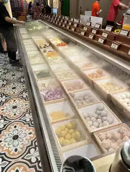 The buffet area allows unlimited additional ~60 ingredients, including common meatballs, vegetables