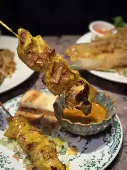 The chicken is incredibly thick๐ฅ and tender without being dry. The thick and fragrant satay sauce is delicious. Dip in the satay sauce Super delicious ๐