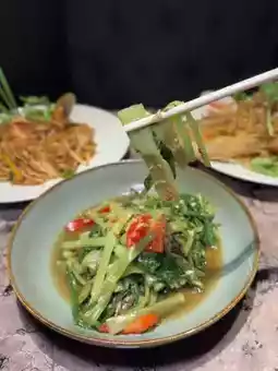 The Thai-style stir-fried water spinach is incredibly fragrant!