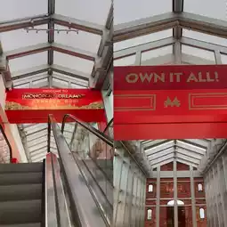 The Monopoly Dream World Theme Pavilion is located on the 3rd floor of Peninsula Plaza. When you take the elevator up, you will see the sign "Monopoly Dream World welcomes you!"