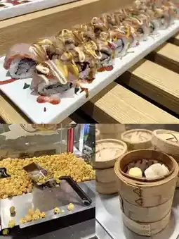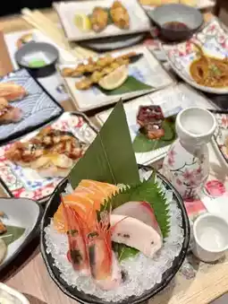 We chose the ✨Classic Double Abalone Foie Gras Tart Seafood Feast✨ dinner set with a service charge, costing around HKD 300+ per person. There are 80 items to choose from, including sashimi, sushi rolls🍣, grilled dishes, skewers🍢, hot dishes, fried items, and more. There's also a self-service area offering cold and hot dishes, sushi, fruits, desserts, unlimited sake🍶, plum wine, red wine🍷, beer🍺, and other soft drinks and packaged beverages🧃.