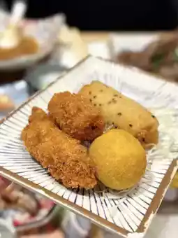 For fried items, I tried the pumpkin and tiger prawn tempura🍤, purple sweet potato balls, breaded fried oysters, crispy fried milk, and more. Everything was fried to a nice crisp without being overly greasy🍢.