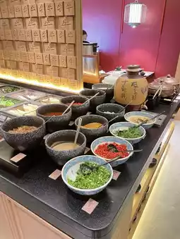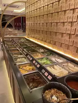 Some hot pot ingredients can be ordered with QR code, others can be served at the buffet