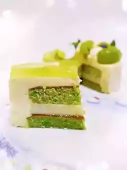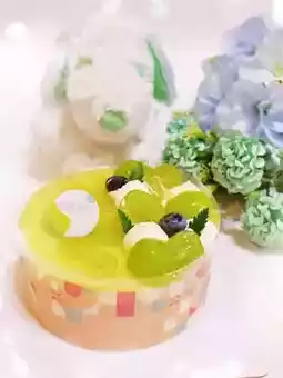 The top layer of the cake is covered with fragrant pulp, which not only tastes good but also has a very fragrant smell. The top layer is half crystal green grape jelly, the other half cream, double flavor 😀.