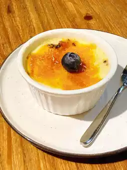 The French Tangerine Crème Brûlée combines the smoothness of classic French crème brûlée with the unique aroma of tangerine peel. It's sweet but not overwhelming, with a hint of citrus freshness, making it a sophisticated dessert and the perfect ending to your meal. 🍮🍊