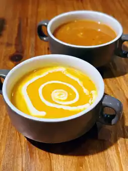 Both soups are clear yet flavorful, highlighting the natural taste of the ingredients. The vegetable soup includes pasta-like ingredients and fresh mixed mushrooms, making it nutritious and free of MSG.