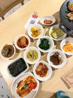 The table is filled with a variety of colorful side dishes, each one appealing.🫶🏻 The kimchi was a real hit with my friends and companions. It's incredibly crisp, not too salty or spicy, and delicious on its own or with rice. 👍🏻