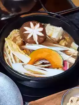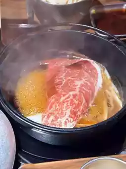 The Wagyu was a delightful surprise ✨. Even the lean cuts were tender. The sukiyaki is Kansai-style, where the beef is first seared with a little broth 🐂, then more broth is added to cook the vegetable platter, which includes enoki mushrooms, baby bok choy, shiitake mushrooms, and more. Everything absorbs the broth's flavor perfectly, achieving a balanced sweet and savory taste.