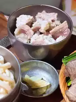 The pork, raised on a rice diet, has evenly distributed fat, is juicy and tender, and carries a slightly sweet aroma 🐖.