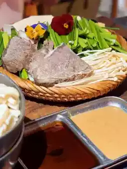 The set includes appetizers, a main dish, and a staple food 🍜. The staff starts by sautéing garlic in the pot, then adds the beef offal, which already smells amazing. Finally, they pour in the broth, and once it boils, it's ready to eat. The beef offal is tender and bouncy, not overly greasy 🤤. Additionally, the beef shank is very soft, and the chives, which are essential to the hot pot, soak up the broth's essence, making them incredibly flavorful. We chose the beef bone broth, but they also offer miso broth and Korean chili paste broth.