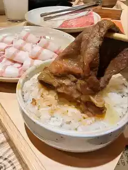 I went with a friend, and I chose the sukiyaki soup base. The staff first sautéed the pot with lard before adding the sukiyaki sauce, releasing an irresistible aroma. Cooking A4 lean wagyu in it was simply divine—the marbling was beautiful, the meat tender and flavorful, soaking up the sauce perfectly. My friend opted for the Hokkaido curry soup base paired with pork belly. The soup was mildly spicy and aromatic, while the pork had a balanced fat-to-lean ratio, making it incredibly satisfying.