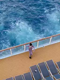 360 degree lift-off overlooking the entire cruise ship + endless sea level! It's breathtakingly beautiful at dusk, be sure to make an appointment in advance! ! The appointments were full soon after boarding.