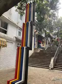 In Sheung Wan’s PMQ, I discovered a British artist’s giraffe piano. If you know how to play, feel free to perform here, as music itself brings joy. Nearby, on the fences during the Lunar New Year, you’ll find festive couplets wishing everyone a fresh start to the year. There are also murals in the area, showcasing how art is all around us. Next time you’re in Central and Sheung Wan, continue exploring the works of these talented artists.