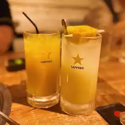 Two cups of lactic acid taste fresh, not too sweet, just right to relieve the greasiness of barbecue✨. There will be a piece of caramelized pineapple on top of the pineapple lactic acid, which is very special and delicious~