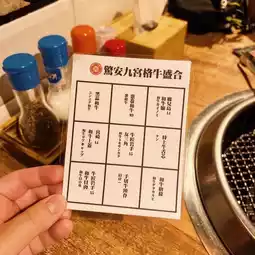The first thing is to order their recommended Nine Palaces Beef Set, 😆 you can try nine kinds of beef at once, including black garlic Wagyu, Miyazaki A4 Wagyu covered, Beef Iwate A5 Wagyu Mussels, Onion Roll Wagyu, Beef Iwate A5 Friend Triangle, Hand-cut Beef Neck Ridge, Kagoshima A4 Wagyu Brisket, Special Beef Tongue Core, and Wagyu Ribs. The clerk will be very careful to introduce to us which meat beat which type, inside each meat will have about 2 pieces, the portion is not much, but looks very high quality and attractive! 😍 The middle grid should be the highest grade, its color is very beautiful, snowflakes are evenly distributed, eat full of grease fragrance, melt in your mouth! And several other wagyu beef are rich in meat flavor and soft~