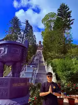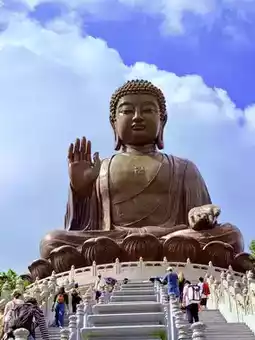 Tian Tan Buddha, known as one of Lantau Island's most famous tourist attractions, is a statue of Sakyamuni Buddha located on Muk Yu Peak in front of Po Lin Monastery on Lantau Island, Hong Kong. Located at an altitude of 520 meters in Ngong Ping, it is the world's tallest outdoor bronze seated Buddha.