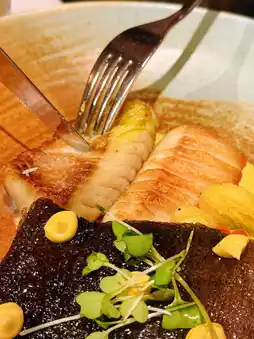 An innovative dish, the cod is seared to a crispy skin with tender flesh, complemented by a creamy salted egg and saffron sauce that is both rich and savory.