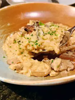 The rich aroma of porcini mushrooms pairs perfectly with the creamy risotto. The dish is flavorful, with fresh mushrooms and a delightful texture, making it a great choice for vegetarians.