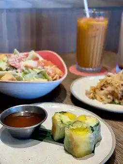 Salmon Tartare, salmon tartar with crispy toast, exquisite choice! Avocado Mango Rice Paper Roll Vietnamese rice paper roll! Avocado creamy, mango sweet, order fish sauce more fresh ~