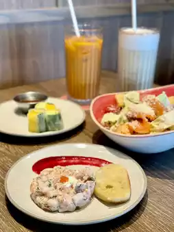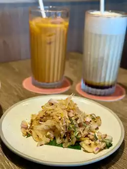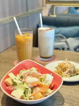 🍰 Dessert Tiramisu, the aroma of coffee and wine is outstanding. The mango sweet glutinous rice is warm and fragrant with coconut milk! Drink Cappuccino, rich coffee, fluffy milk. Thai Milk Tea is rich and not overly sweet.
