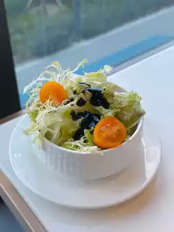 Squid Ink Seafood Pasta 🍝: Includes shrimp 🦐, squid 🦑, and mussels 🐚. The squid ink sauce is mildly spicy with a hint of garlic 🌶️, making it delicious 🤤.