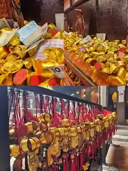 You can also ask the temple staff for advice on offerings. These include red incense sticks, round incense sticks, and gold ingots for worshipping the God of Wealth, Cai Shen Ye, to promote wealth and prosperity. There's also a golden shovel for praying for sons and daughters.
