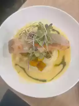 Pan-seared Slow-cooked Salmon with Orange Butter Sauce 🐟: The salmon was perfectly seared with a crispy exterior and tender interior 😆, served on a bed of diced potatoes and mashed potatoes 🥔.