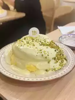 Pistachio Cream Soufflé Pancakes 🥞: The soufflé pancakes were incredibly airy 😍, with a rich eggy aroma 🥚. The slightly sweet pistachio cream 🤤 and crushed pistachios added layers of flavor 🌰.
