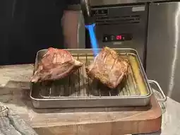 The waiter preheated the grill pan and grilled the onions. It cost $25 per person.