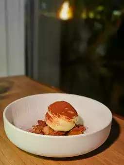 Dessert was a Banoffee, filled with banana sauce, chocolate chips, and candied walnuts, topped with a crunchy cookie base. It was sweet yet not cloying, and the perfect end to the meal.