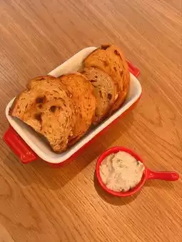 Pre-dinner bread ๐ฅฏ: Includes sun-dried tomato bread and nut-raisin bread ๐