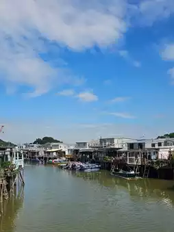 Tai O, known as Hong Kong's rare "water town," is famous for its unique stilt houses and laid-back fishing village atmosphere. It is an ideal destination to connect with nature and experience local culture. Under the blue sky and white clouds, with hills in the distance and a few small boats docked by the sea, complemented by modern architecture, Tai O presents its most iconic outdoor cultural landscape.