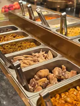 Next, we checked out the buffet area. The cold dishes included chicken wing tips, marinated fish skin, and pig ears. We sampled a bit of everything.