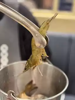 The seafood selection in the tanks was quite extensive, including giant prawns, mantis shrimp, abalone, clams, and crabs. Previously, they even had razor clams, but we didn’t see them this time. We quickly filled a bucket with a variety of seafood, handed it to the staff for cleaning, and then went to grab drinks and other food.