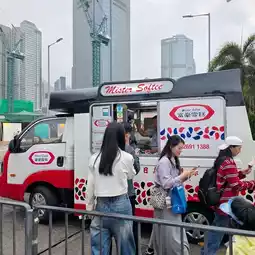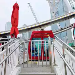 #KidsAttractions Take your kids on the Hong Kong Ferris Wheel for a 360-degree view. This landmark is a must-see for anyone visiting Hong Kong, offering panoramic views of Victoria Bay and the entire island of Kowloon. Adults pay 20 HKD, but if you want a private ride like we did, charter a private gondola for 160 HKD. This is a great value. It seats up to 8 people, and the gondola is cool and air-conditioned, rotating slowly three times. It's especially enjoyable in the evening, with blue skies and stunning sunsets. The surrounding area features musicians, restaurants, and ice cream shops, creating a wonderful atmosphere.