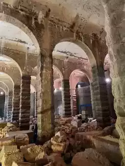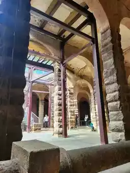 The ancient Roman arch design, granite columns, and red brick arches are reminiscent of the Roman Baths in Bath, England. Combined with the natural light and the lighting inside, the building exudes a majestic atmosphere, making it a must-see.