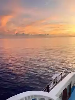 The atmosphere during boarding was lively, and the staff were very friendly. They helped us check in and handle our luggage in an organized manner. After boarding, we went to our room to drop off our luggage. The room was clean and comfortable, with floor-to-ceiling windows offering a sea view 🌅. Sitting on the balcony at night, listening to the sound of the waves, was so soothing.