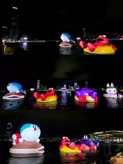 #labubu #dora #GiantInflatableSculpture #VictoriaHarbour #Doraemon #SesameStreet #Elmo #Skating