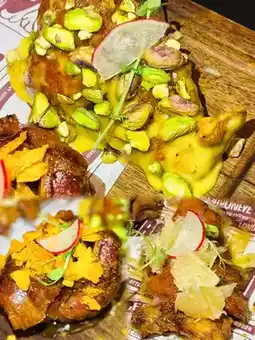 This dish offers six flavors to choose from (pick 3 out of 6). Having the entire pork knuckle in one flavor might be monotonous, but here you can select three different flavors, making it anything but boring! I chose Pistachio Honey Mustard, Garlic Black Pepper, and Thai Seafood Sauce. The Pistachio Honey Mustard is highly recommended for its unique taste, featuring creamy pistachio bits. Usually, I hesitate to order pork knuckle because of the hassle of deboning, but here, the pork knuckle is already deboned and divided into three portions, each coated with a different sauce. Such thoughtful preparation! It also comes with a bottle of beer, which you can either drink alongside or use to soak the pork knuckle for an extra layer of flavor.