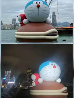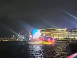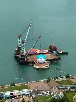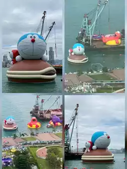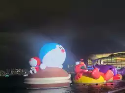 A few days ago, I noticed Doraemon and other popular cartoon characters being inflated, which piqued my curiosity. At night, I headed to Tamar Road to join the excitement. The "Victoria Harbour Sea Parade" is currently gathering popular characters like Labubu, McDonald's Grimace, Kaws x Elmo, and a giant Doraemon installation at the Central Harbourfront! There are also themed markets featuring various international popular cartoon characters, game booths, and snack stalls. The atmosphere on-site is lively, with a strong carnival vibe.
