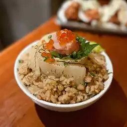 Visually appealing! The rice bowl is topped with minced tuna, flounder edges, and salmon roe. The ingredients are fresh and generously portioned! Underneath is a bed of vinegared rice, making the overall portion very satisfying 👍🏻👍🏻