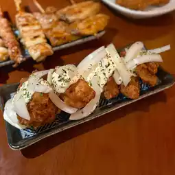 The fried chicken pieces are large, fried to a golden crisp, and very juicy! Topped with salad dressing and raw onions 🧅, the texture is rich and layered 🤤🤤