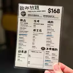 As for drinks, we opted for the "$168 two-hour free-flow drinks" package, which includes unlimited non-alcoholic beverages, draft beer, shochu, sake, and whiskey. It's a great deal! Perfect for all the drink lovers 🍻🍻