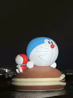 Doraemon, Labubu, Slippery, and Elmo from Sesame Street are transformed into giant inflatable sculptures,