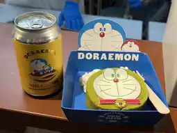 I bought a matcha-flavored #DoraemonRolledEgg ($68) and a can of pineapple sparkling tea ($28) as souvenirs.