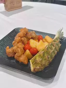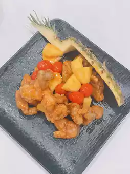 Sweet and Sour Pork with Fresh Pineapple ๐ features crispy and tangy sweet pork ๐คค paired with pineapple and cherry tomatoes ๐๐
